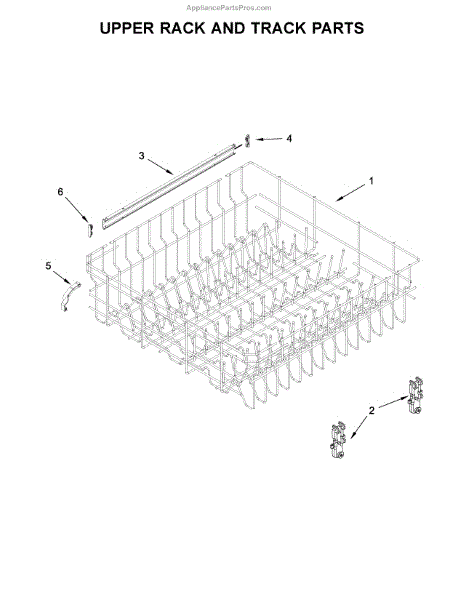 The Upper Dishrack Rail is an OEM replacement part for Whirlpool dishwashers. It guides upper racks in and out for easy access to dishes.