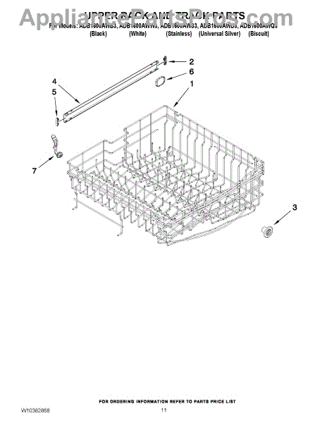 The Upper Dishrack Rail is an OEM replacement part for Whirlpool dishwashers. It guides upper racks in and out for easy access to dishes.