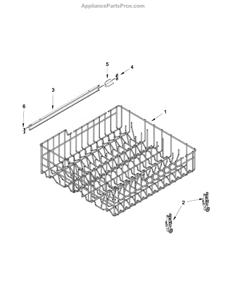 This replacement dishrack restores secure loading and proper spacing so wash water reaches every item. Replacing a bent or rusty rack helps prevent tipped dishes and marks from flaking rust, and keeps loading/unloading smooth when the rack rollers are intact.