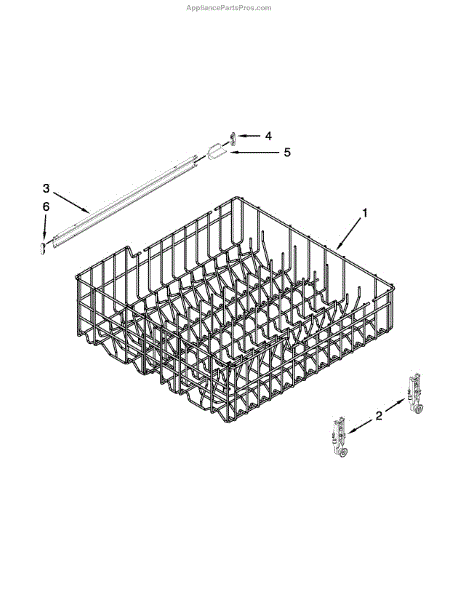 This replacement dishrack restores secure loading and proper spacing so wash water reaches every item. Replacing a bent or rusty rack helps prevent tipped dishes and marks from flaking rust, and keeps loading/unloading smooth when the rack rollers are intact.