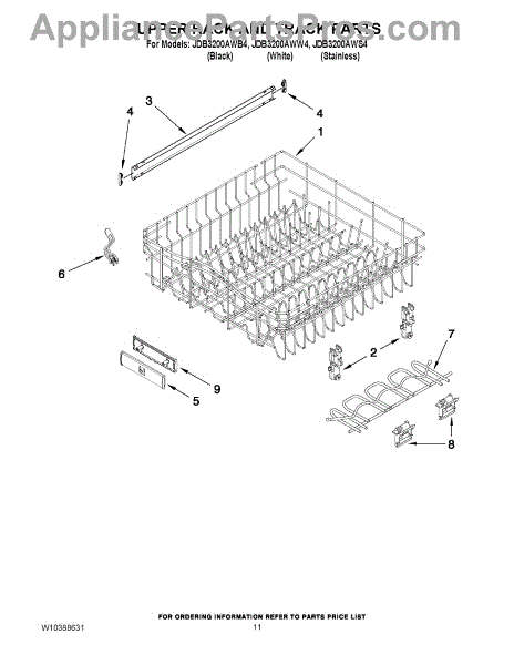 Parts for Jenn-Air JDB3200AWS4: 09 - Upper Rack And Track Parts