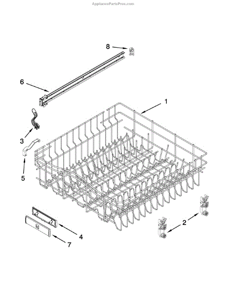 This lower dishwasher dishrack replaces a worn or damaged lower rack to restore secure dish and cookware support and improve cleaning performance. It fits compatible Whirlpool-built dishwashers and mounts to standard lower track rollers. What it does