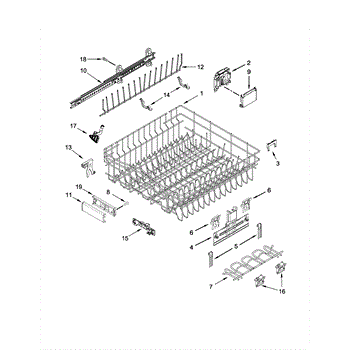 The Track, Asm (RH) is an OEM part for Whirlpool dishwashers. It is the right-hand side track assembly that supports and guides the dishwasher's upper rack as it slides in and out. This part ensures that the rack moves smoothly and securely, allowing for easy loading and unloading of dishes while preventing disruptions during the wash cycle.