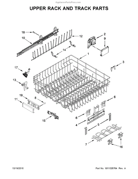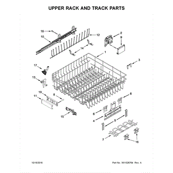 The Track, Asm (RH) is an OEM part for Whirlpool dishwashers. It is the right-hand side track assembly that supports and guides the dishwasher's upper rack as it slides in and out. This part ensures that the rack moves smoothly and securely, allowing for easy loading and unloading of dishes while preventing disruptions during the wash cycle.