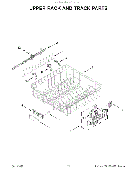 Parts for Jenn-Air JDPSS244LL2: Upper Rack And Track Parts