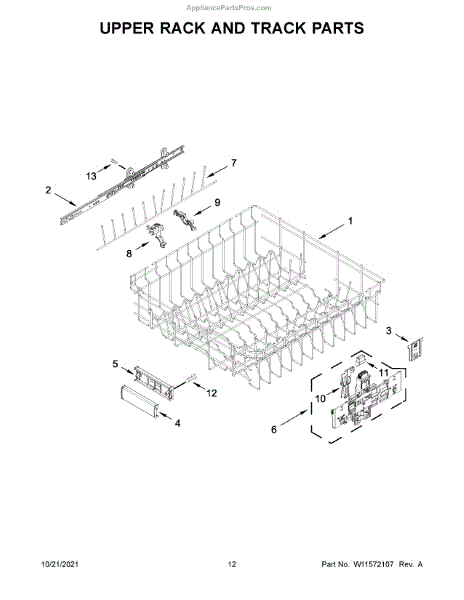 Parts for Jenn-Air JDPSS244LM0: Upper Rack And Track Parts