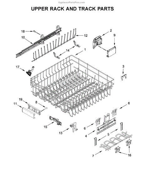 The Track, Asm (RH) is an OEM part for Whirlpool dishwashers. It is the right-hand side track assembly that supports and guides the dishwasher's upper rack as it slides in and out. This part ensures that the rack moves smoothly and securely, allowing for easy loading and unloading of dishes while preventing disruptions during the wash cycle.