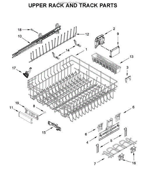 This upper rack assembly restores the top loading area of your dishwasher and provides stable, organized support for glasses, cups and small dishes in an onyx black finish. Replaces a cracked, bent or missing upper rack. What it does