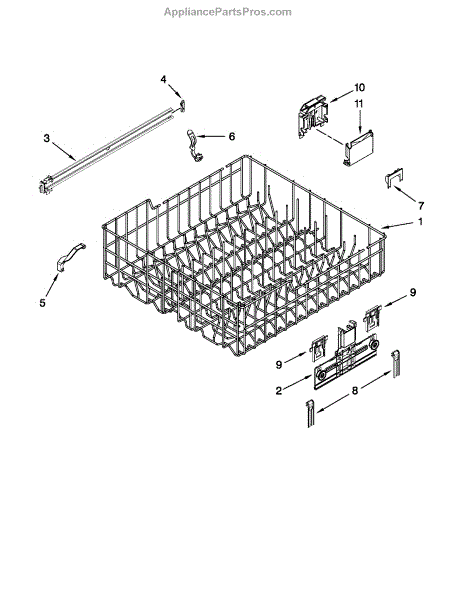 Replacement upper dishrack for dishwashers. Holds dishes, glasses, and utensils during wash cycles. Replace if rusted, cracked, or broken tines damage items.
