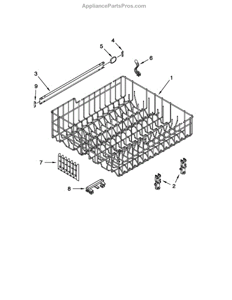 This replacement dishrack restores secure loading and proper spacing so wash water reaches every item. Replacing a bent or rusty rack helps prevent tipped dishes and marks from flaking rust, and keeps loading/unloading smooth when the rack rollers are intact.