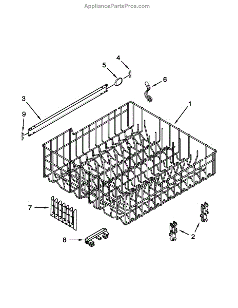 This replacement dishrack restores secure loading and proper spacing so wash water reaches every item. Replacing a bent or rusty rack helps prevent tipped dishes and marks from flaking rust, and keeps loading/unloading smooth when the rack rollers are intact.