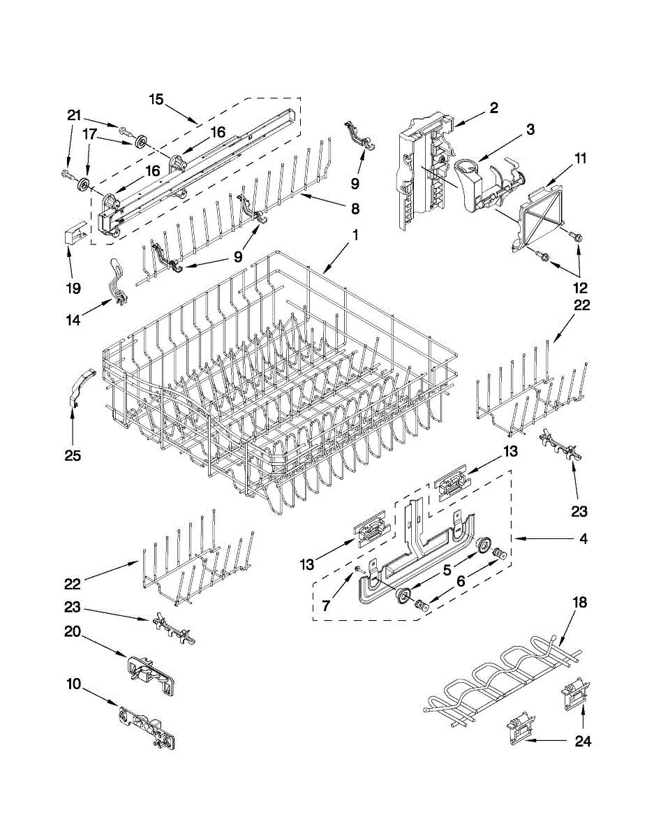 Replacement upper dishrack for dishwashers. Holds dishes and glasses in the top position. Order if your original rack is rusted, cracked, or broken.