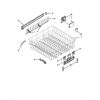 The Upper Dish Rack is an OEM replacement part for Whirlpool dishwashers. Located on the upper level inside the tub, it provides an area for washing smaller dishes, utensils, and glasses.