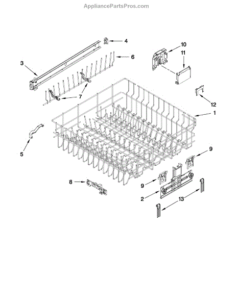 Upper dish rack assembly for dishwashers. Holds glasses, cups, and small items on the top level. Replace if cracked, warped, rusted, or deteriorating.