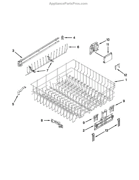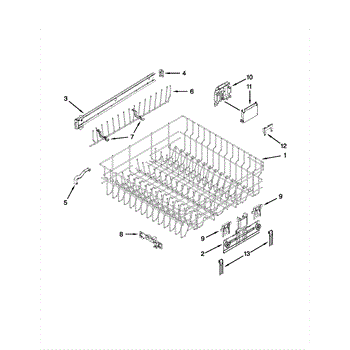 The Upper Dish Rack is an OEM replacement part for Whirlpool dishwashers. Located on the upper level inside the tub, it provides an area for washing smaller dishes, utensils, and glasses.