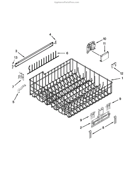 The Dishrack is an OEM part for Whirlpool dishwashers. This dishrack provides the structure and support needed to hold dishes, glasses, and utensils securely during the washing cycle. It is designed to maximize space and ensure that items are correctly positioned for optimal cleaning.