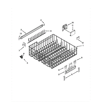 Replacement upper dishrack for dishwashers. Holds dishes, glasses, and utensils during wash cycles. Replace if rusted, cracked, or broken tines damage items.