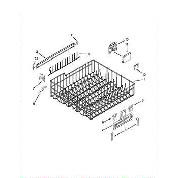 The Dishrack is an OEM part for Whirlpool dishwashers. This dishrack provides the structure and support needed to hold dishes, glasses, and utensils securely during the washing cycle. It is designed to maximize space and ensure that items are correctly positioned for optimal cleaning.