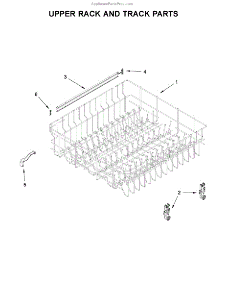 Replacement upper dishrack for dishwashers. Holds dishes, glasses, and utensils during wash cycles. Replace if rusted, cracked, or broken tines damage items.