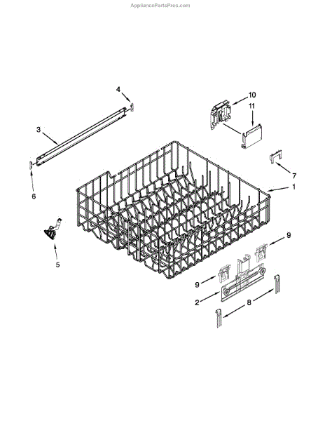 Replacement upper dishrack for dishwashers. Holds dishes, glasses, and utensils during wash cycles. Replace if rusted, cracked, or broken tines damage items.