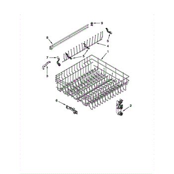 The Upper Dish Rack is an OEM replacement part for Whirlpool dishwashers. Located on the upper level inside the tub, it provides an area for washing smaller dishes, utensils, and glasses.