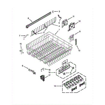 The Upper Dish Rack is an OEM replacement part for Whirlpool dishwashers. Located on the upper level inside the tub, it provides an area for washing smaller dishes, utensils, and glasses.