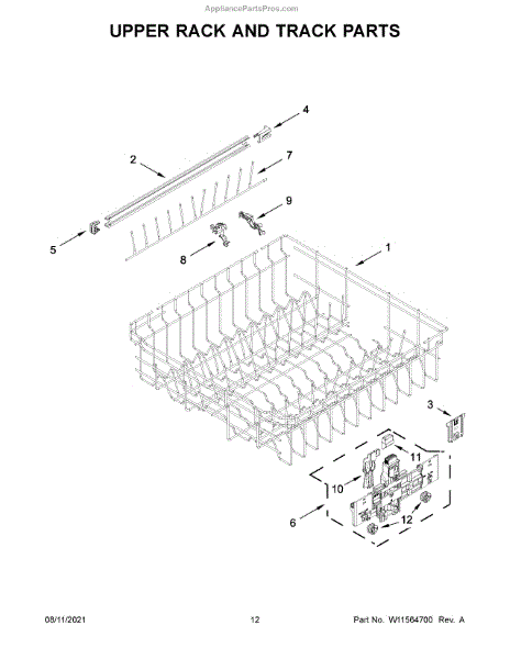 Replacement lower dish rack bar that restores support and alignment to the dishwasher's lower rack. It helps keep dishes steady and the rack running smoothly so dishes get proper wash coverage and don't tip. What it does