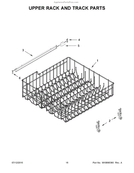 The Upper Dishrack Rail is an OEM replacement part for Whirlpool dishwashers. It guides upper racks in and out for easy access to dishes.