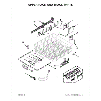 The Upper Dish Rack is an OEM replacement part for Whirlpool dishwashers. Located on the upper level inside the tub, it provides an area for washing smaller dishes, utensils, and glasses.