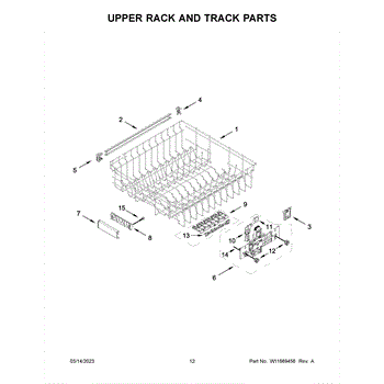 This upper rack adjuster mounts on the right side of the dishwasher's rack system. It lets you raise or lower the rack and keeps it level so you can load taller items and maintain consistent spray coverage.