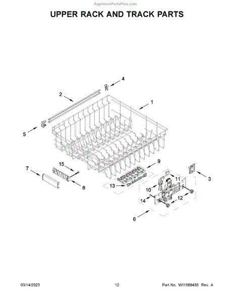 This upper rack adjuster mounts on the right side of the dishwasher's rack system. It lets you raise or lower the rack and keeps it level so you can load taller items and maintain consistent spray coverage.