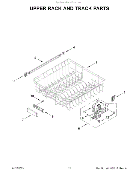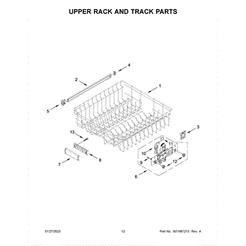 Parts for Kitchenaid KDFE204KBS1: Upper Rack And Track Parts