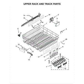 The Upper Dish Rack is an OEM replacement part for Whirlpool dishwashers. Located on the upper level inside the tub, it provides an area for washing smaller dishes, utensils, and glasses.