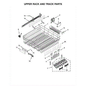 The Track, Asm (RH) is an OEM part for Whirlpool dishwashers. It is the right-hand side track assembly that supports and guides the dishwasher's upper rack as it slides in and out. This part ensures that the rack moves smoothly and securely, allowing for easy loading and unloading of dishes while preventing disruptions during the wash cycle.