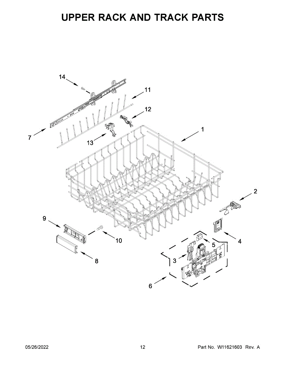 Parts for Kitchenaid KDPM704KPS1: Upper Rack And Track Parts