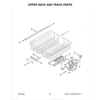 This upper rack adjuster mounts on the right side of the dishwasher's rack system. It lets you raise or lower the rack and keeps it level so you can load taller items and maintain consistent spray coverage.