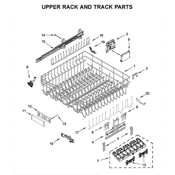 The Upper Dish Rack is an OEM replacement part for Whirlpool dishwashers. Located on the upper level inside the tub, it provides an area for washing smaller dishes, utensils, and glasses.