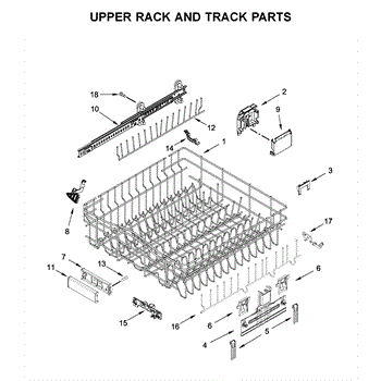 The Upper Dishrack is an OEM part for Whirlpool dishwashers. This dishrack is designed to hold dishes, glasses, and other items securely in the upper part of the dishwasher during the wash cycle, allowing for effective cleaning and efficient use of space.