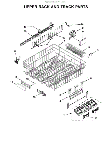 The Track, Asm (RH) is an OEM part for Whirlpool dishwashers. It is the right-hand side track assembly that supports and guides the dishwasher's upper rack as it slides in and out. This part ensures that the rack moves smoothly and securely, allowing for easy loading and unloading of dishes while preventing disruptions during the wash cycle.