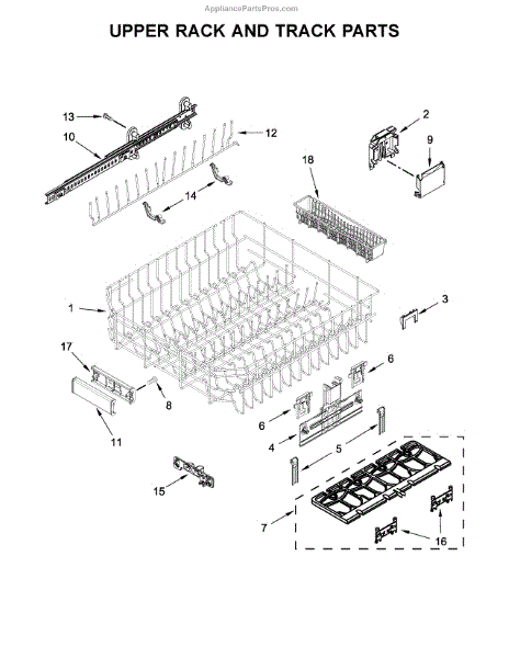 The Track, Asm (RH) is an OEM part for Whirlpool dishwashers. It is the right-hand side track assembly that supports and guides the dishwasher's upper rack as it slides in and out. This part ensures that the rack moves smoothly and securely, allowing for easy loading and unloading of dishes while preventing disruptions during the wash cycle.