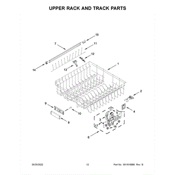 Parts for Kitchenaid KDTM604KBS1: Upper Rack And Track Parts