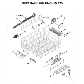 The Upper Dishrack is an OEM part for Whirlpool dishwashers. This dishrack is designed to hold dishes, glasses, and other items securely in the upper part of the dishwasher during the wash cycle, allowing for effective cleaning and efficient use of space.