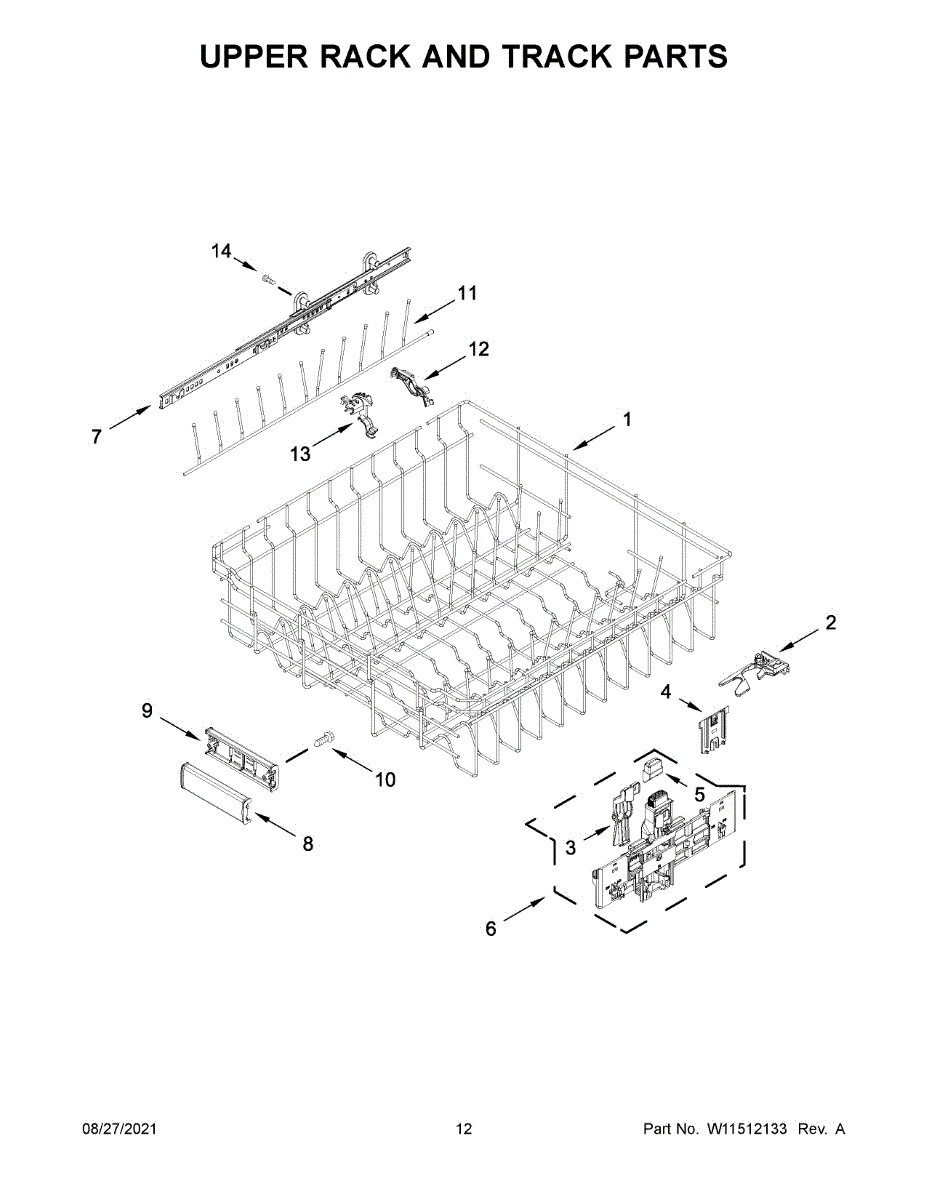 Upper rack track for dishwashers. This track guides the upper dish rack as it slides in and out. Replace if cracked, broken, or causing rough movement.