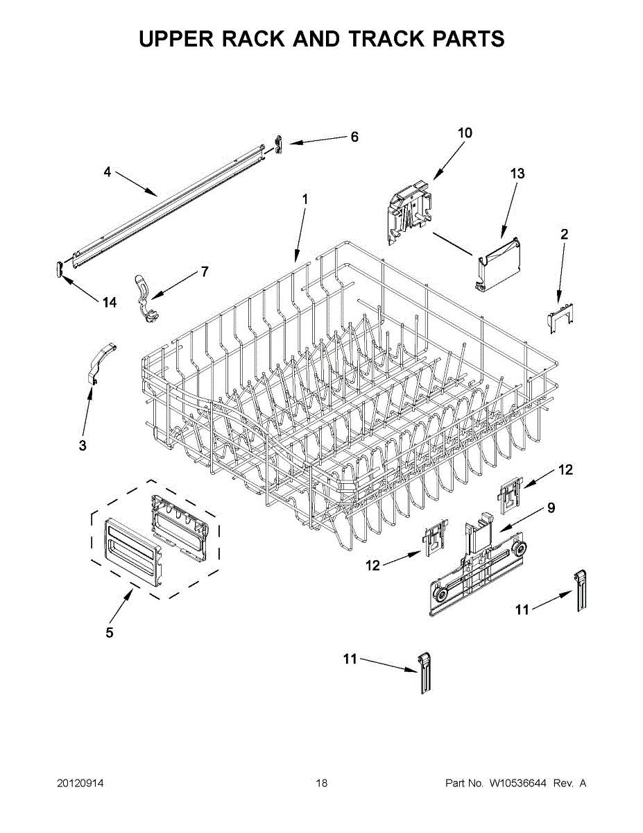 Guides the upper rack smoothly in and out of your dishwasher. Replace if cracked, broken, or wheels no longer roll properly along the track.