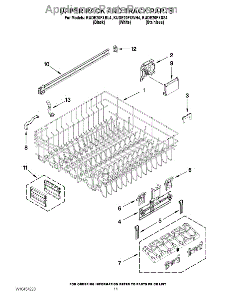 Parts for Kitchenaid KUDE20FXBL4: 09 - Upper Rack And Track Parts