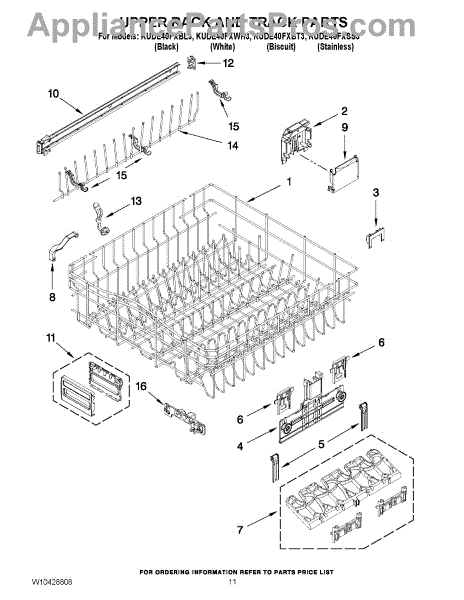 Parts for Kitchenaid KUDE40FXBL3: 09 - Upper Rack And Track Parts