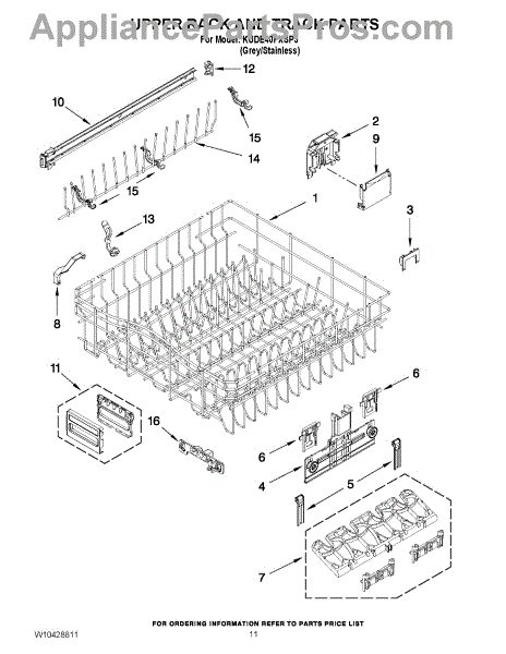 Parts for Kitchenaid KUDE40FXSP3: 09 - Upper Rack And Track Parts