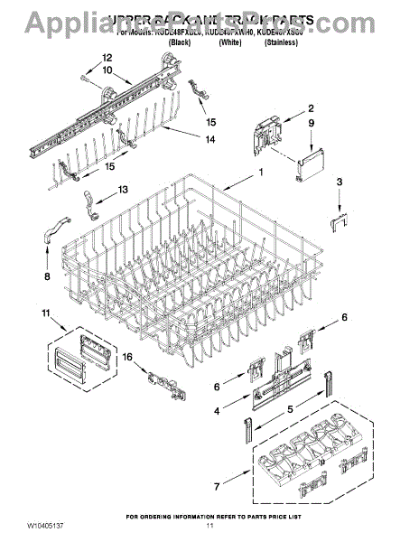Parts for Kitchenaid KUDE48FXBL0: 09 - Upper Rack And Track Parts