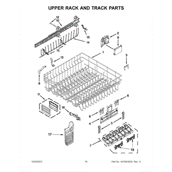 The Track, Asm (RH) is an OEM part for Whirlpool dishwashers. It is the right-hand side track assembly that supports and guides the dishwasher's upper rack as it slides in and out. This part ensures that the rack moves smoothly and securely, allowing for easy loading and unloading of dishes while preventing disruptions during the wash cycle.