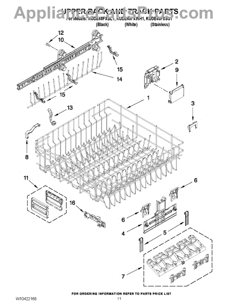 Parts for Kitchenaid KUDE48FXSS1: 09 - Upper Rack And Track Parts